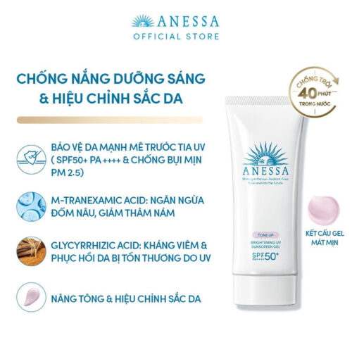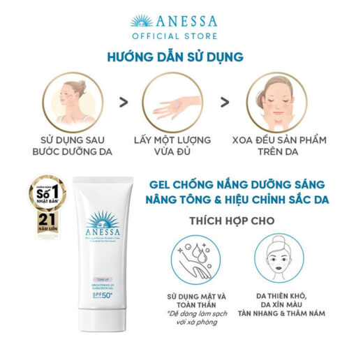 Gel Chống Nắng Anessa Dưỡng Sáng Nâng Tông Và Hiệu Chỉnh Sắc Da 90g là sản phẩm chống nắng phiên bản mới nhất năm 2022 đến từ thương hiệu chống nắng dưỡng da ANESSA hàng đầu Nhật Bản suốt 21 năm liên tiếp, với kết cấu gel ẩm mượt, mát mịn giúp duy trì độ ẩm cho làn da, ngăn ngừa các dấu hiệu lão hóa da do tia UV, bảo vệ da trước tác hại của bụi mịn. Sản phẩm đặc biệt phù hợp làn da thiên khô, xỉn màu, đốm nâu, tàn nhang.